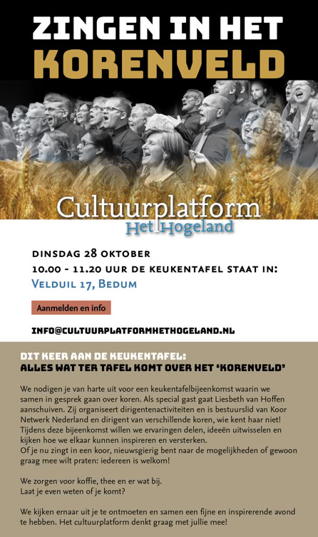 Het Cultuurplatform is er voor amateurs en professionals in het brede veld van cultuur-beoefenaars en beleidmakers in Het Hogeland.